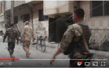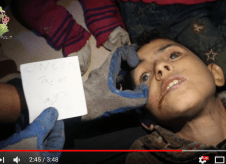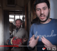 Doumani’s hospital video was 4:12 minutes long. It spliced scenes from the previously published Douma Revolution hospital videos (e.g. the drenching of the girl in the purple sweater) and Yaser’s imprecation in the street in his first victim video, but also included several minutes of new hospital footage
