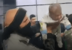 - the girl in pink was also moved into the room with couch, hugging the woman in black hijab.