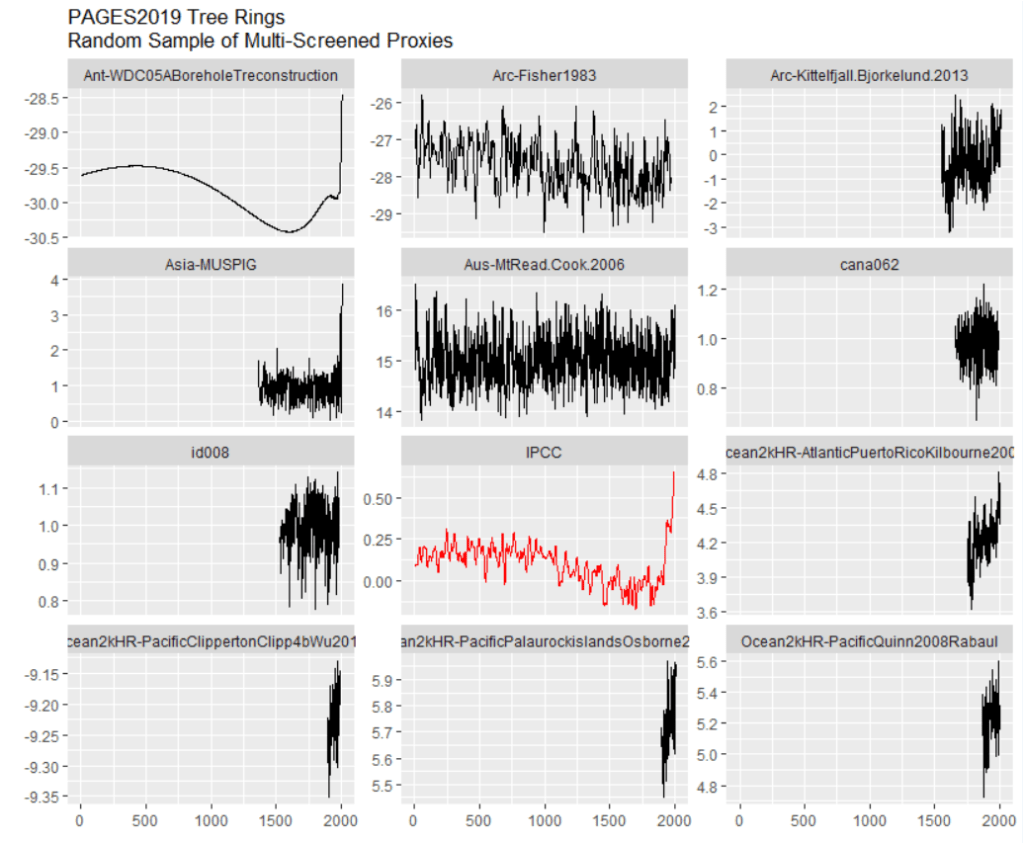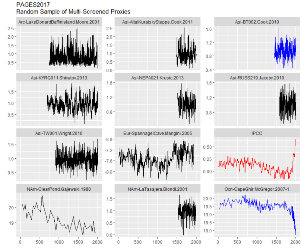 The PAGES2019 is not a “random” selection of proxies, but winnowed through ex post criteria. As Rosanne d’Arrigo explained to the NAS panel many years ago: if you want to make cherry pie, you first have to pick cherries.