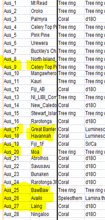 Variables in the processed control data are then selected using a missing values mask derived from the actual processed observational data, which should eliminate all the control data variables with ‘undefined data’ marker values . Unfortunately, it turns out that the two 80–85°N latitude band control data variables mentioned, unlike all the other control data variables marked as missing by having ‑32,768°C values, aren’t in fact marked as missing in the processed observational data. So they get selected from the control data along with the valid data. I think that the reason why those points aren’t marked as missing in the observational data could possibly be linked to what looks to me like a simple coding error in a function called ‘vltmean’, but I’m not sure. (All the relevant data and IDL code can be downloaded as large (2 GB) file archive GRL06_reproduce.tgz here.)