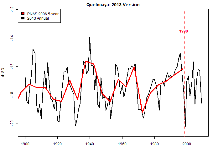 Marcott’s uncertainty calculation is merely the most recent example. Although Marcott et al spend considerable time and energy on their calculation of uncertainties, I was unable to locate a single relevant statistical reference either in the article or the SI (nor indeed a statistical reference of any kind.) They purported to estimate uncertainty through simulations, but simulations in the absence of a theoretical framework can easily fail to simulate essential elements of uncertainty. For example, Marcott et al state of their simulations: “Added noise was not autocorrelated either temporally or spatially.” Well, one thing we know about residuals in proxy data is that they are highly autocorrelated both temporally and spatially.